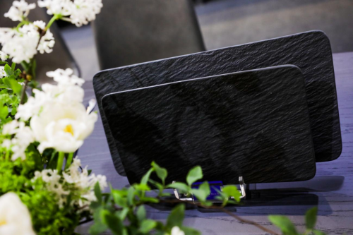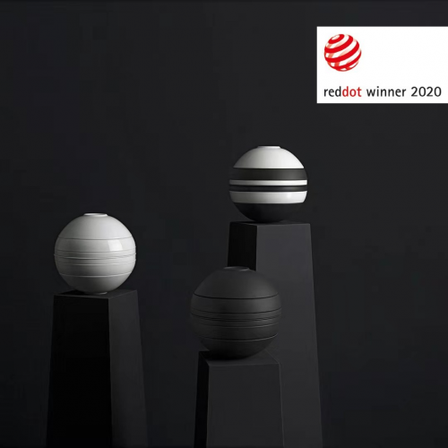 以自然板岩为灵感、运用黑白极简色彩的Manufacture Rock匠心岩系列,将备餐、服务和装点食物的过程,转变为一种创作体验;深得人心的MetroChic都市尚品系列,将几何图案将黑与金这两种经典颜色带入纯白色瓷器, 为精致餐饮营造和谐之美。La Boule拉布尔餐球更是首次在展会惊艳亮相,看似一件精美的餐桌装饰瓷器,打开另有乾坤——7件套餐具一应俱全,适宜两人用,据介绍,此系列共有五款颜色选择,除了经典的黑白配色,还有黑白相间、孟菲斯彩球以及圣诞限定版,无论是装饰还是送礼,皆是致臻之选。