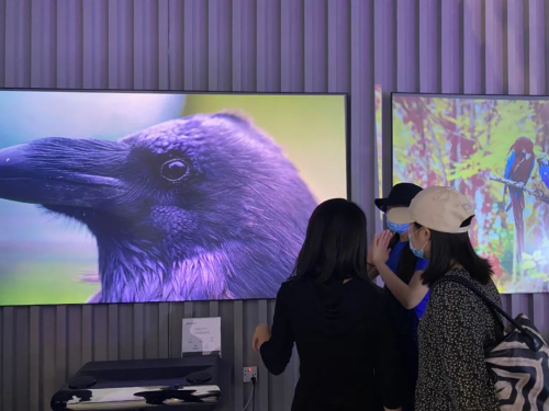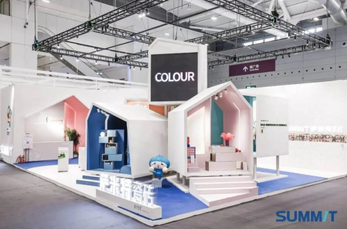 在1号馆的哈尔滨工业大学学院x杰恩设计的展位内,定制了幻彩卡乐板悬挂装置和长凳。幻彩卡乐板和交互设计相结合,带来更多的设计变化,更具未来感。