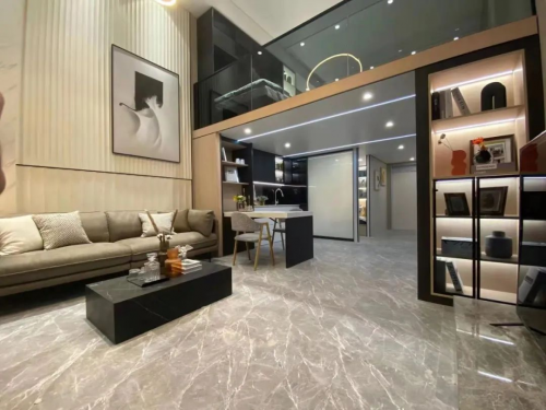 这个方盒子,大概4米面宽,套内面积不到40平,把它立体打造成3房2厅1厨1卫的双层空间,在里面的东西不少,其实只展示了一套产品,或者说是一个家具系统,叫loft家具集成系统。通过用家具的方式打造传统的loft阁楼,最近的5年来,经过6次产品迭代,终于很好的整合了”平台、楼梯、隔断、厨卫、照明”5大部分,让整个家具系统完美达到精装的效果。