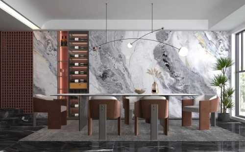 既保留天然石材的纹路肌理,又突破了传统石材无法匹及的弯曲性能及透光型态。广泛应用于各种底材,对于设计师来说也算是提升设计方案的一大利器,本身的原始质感加上独特的纹理,应用于家具饰面上也不失为一大特色。由于超薄、超轻的产品特征,材料质感与家具饰面相互依存,且富于自然和亲切,塑造立体而丰盈的空间场域。