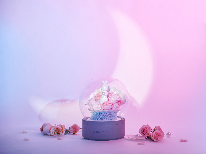 维纳斯高定经由ROSEONLY设计师全程手工锻造。白绒质感的萌兔化身维纳斯,融入珠光贝壳与浪漫永生花,生动还原维纳斯诞生场景。蓝色康乃馨诠释海浪,粉色玫瑰与康乃馨诠释女神脚下盛开的鲜花,将动人时刻就此定格。剔透亚克力罩给予爱礼周全呵护,带来极致浪漫感官体验。ROSEONLY以匠心工艺铸就浪漫轮廓,诠释如海深情。每一朵玫瑰,均从万里选一的厄瓜多尔永生玫瑰中再度甄选,耗时日久用手工精心打造,只为心中恒久唯一。