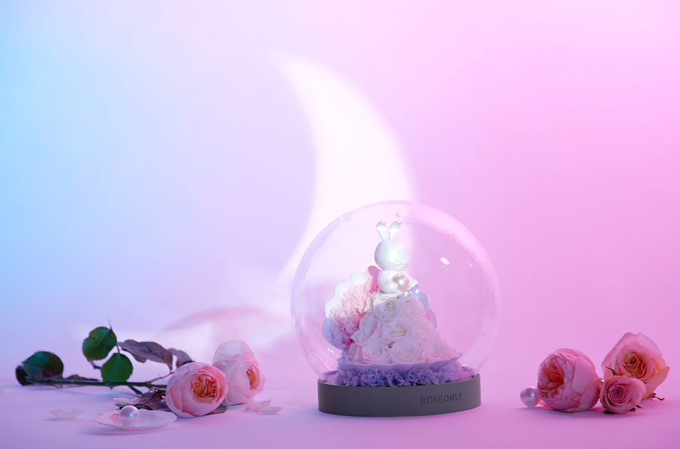 ROSEONLY让珠光萦绕的萌兔化身维纳斯,外形甜美娇憨的维纳斯兔,怀中拥抱璀璨夺目的珍珠,象征爱人如珠宝般的珍贵纯粹,置身于温柔恬静的粉色玫瑰之中,在呈现甜蜜气息与少女情怀的同时,透露一丝趣味及灵动,一朵玫瑰寓意“此爱只此唯一”的美好。不倒底座,诠释爱不止息,融合灵巧的球形设计,适合抱在手中观赏。