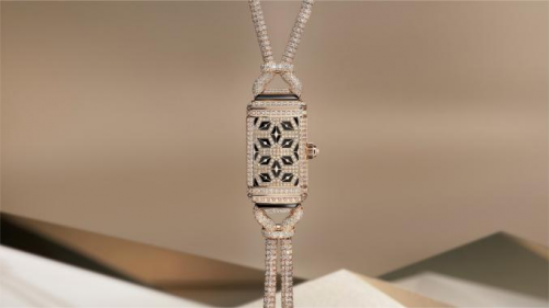 Reverso Secret Necklace翻转系列项链表则令二十一世纪女性得以通过全新优雅方式佩戴Reverso翻转系列腕表。这款华美出众的珠宝奇珍再次彰显了Reverso翻转系列腕表在沿袭原型设计元素的同时不断推陈出新的强大能力。表壳通体点缀由钻石与缟玛瑙组成的装饰艺术图案,悬坠于由玫瑰金链节与缟玛瑙圆珠组成的柔软链条项链之下。