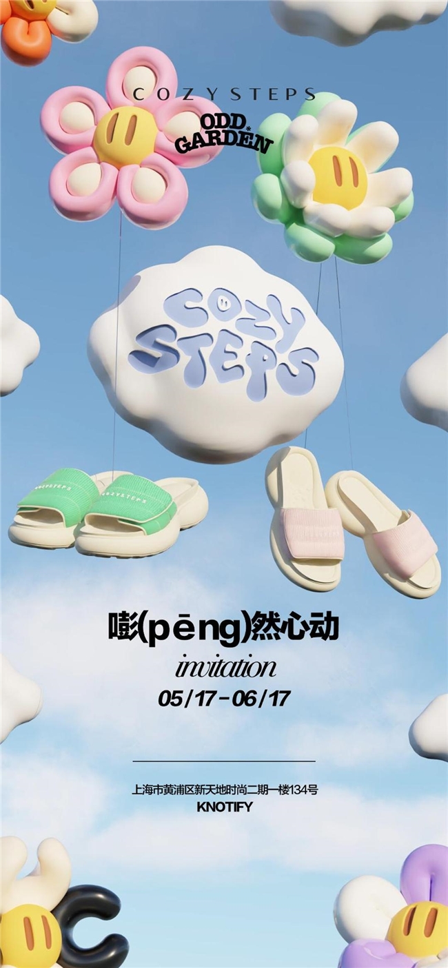 2024年5月17日,COZY STEPS与生活方式品牌ODD GARDEN联名企划「嘭(pēng)然心动」主题活动于上海市黄浦区新天地时尚二期一楼134号的KNOTIFY门店举办。