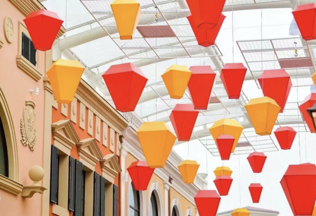 而红色不仅属于意大利,属于佛罗伦萨,也属于中国新年。中央广场上悬挂着满目的大红灯笼,在灯光制造的幻觉下演绎着独属于中国的年味和喜悦,美轮美奂,让人流连忘返。
