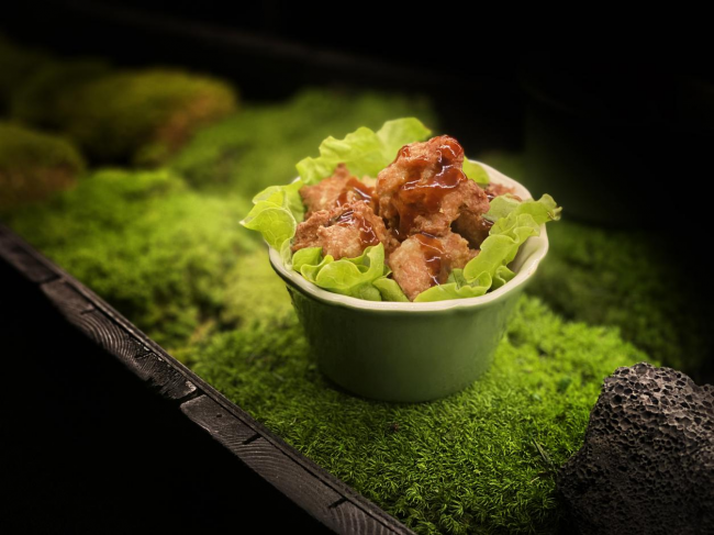 菠萝蜜是少数富含蛋白质、膳食纤维和维生素与抗氧化物的水果。不同于欧美素食餐厅流行的、使用尚未成熟的青菠萝蜜模仿手撕猪肉的质地,『菠若菠萝蜜』使用更香甜的熟菠萝蜜,配以同样颇具营养的鹰嘴豆粉和红椒粉,搭配鲜菠萝片,创造出新奇的口感与味觉。