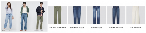优衣库舒适牛仔裤系列:舒适牛仔 天生好搭档。五大丰富版型与四大创新面料,助力各种身材与生活场合,穿出不同精彩;舒适时尚兼顾环保,BlueCycle节水牛仔裤采用创新节水技术,节水率最高可达近95%。