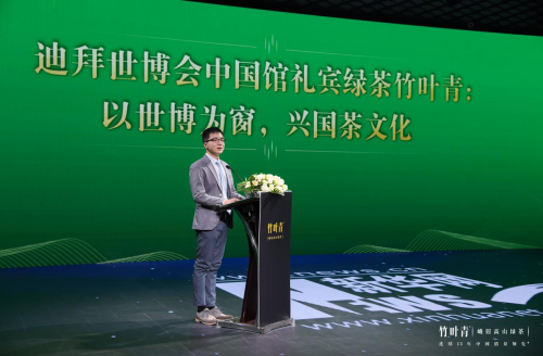 中国贸促会贸易投资促进部世博会事务处处长方可也现身现场致辞,庆贺竹叶青级入选迪拜世博茶后,再获世界级殊荣。