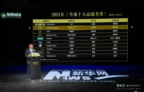 《全球十大高端名茶》由全球领先的品牌顾问评估机构——世界品牌实验室发布,世界经理人集团行政总裁、世界品牌实验室专家组成员袁浩东在现场向全世界公布上榜名单。并着重肯定竹叶青以中国唯一茶品牌上榜的深远意义。