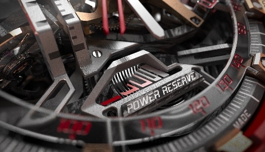 经过多年的研究和试验,陀飞轮作为罗杰杜彼标志性的复杂功能,已经能够有效抵抗这一复杂物理量的影响。众所周知,陀飞轮是制表业最具挑战性的复杂功能之一。传统的陀飞轮通常是在一个特定面上补偿重力的负面效应,而此次,罗杰杜彼将这种效益扩展到了各个面。Monovortex™锥形单涡轮陀飞轮装置位于9点钟位置,以360°锥形轨迹旋转,无论佩戴者如何移动手腕,均能保持腕表的走时精准度,腕表核心的调速机构因而实现了高效重构,此项技术正在申请专利中。
