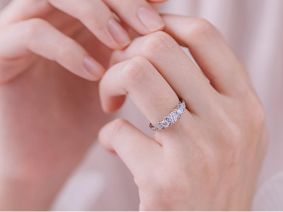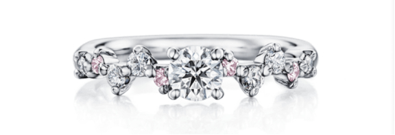 白钻和粉钻的双色小钻仿若星星呢喃眨眼般小巧可爱。主钻两侧选用粉红钻石与白色钻石搭配,交替闪烁就如天上的繁星点点。不但呈现出女性可爱的一面,同时也焕发时尚典雅的气质。
