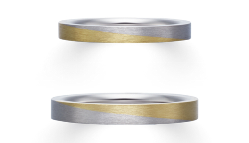 以冬天的词语为名的结婚戒指,表现天和地连在一起的梦幻般光景。表面以直丝加工,呈现出柔和的雨季情节。通过两个材质颜色的对比,令人联想起二人之间坚固的羁绊。