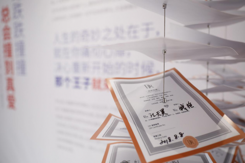 在DR广州北京路店,DR钻戒将3000多份粉丝的真爱协议制成了艺术装置,带来了惊艳的视觉震撼效果,也令人更加信服真爱的力量。此外,在DR店内的墙面上,还写满了粉丝告白宣言和爱情故事,让每个到店的恋人都可以感受DR特有的真爱文化信仰。